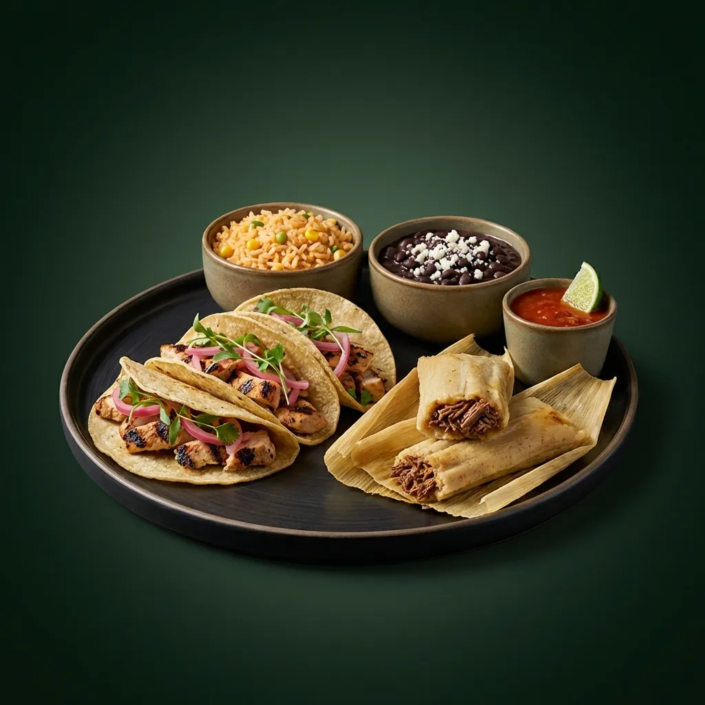 Authentic Hispanic street food featuring tacos, pupusas, tamales, and more traditional favorites